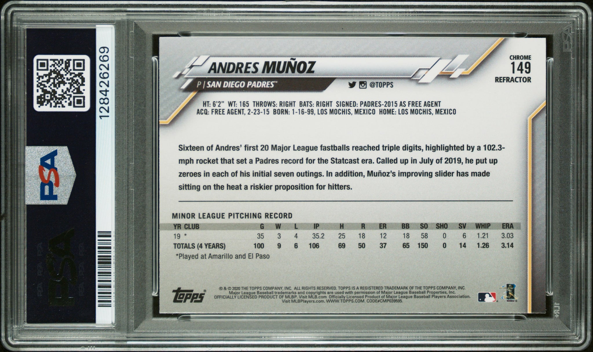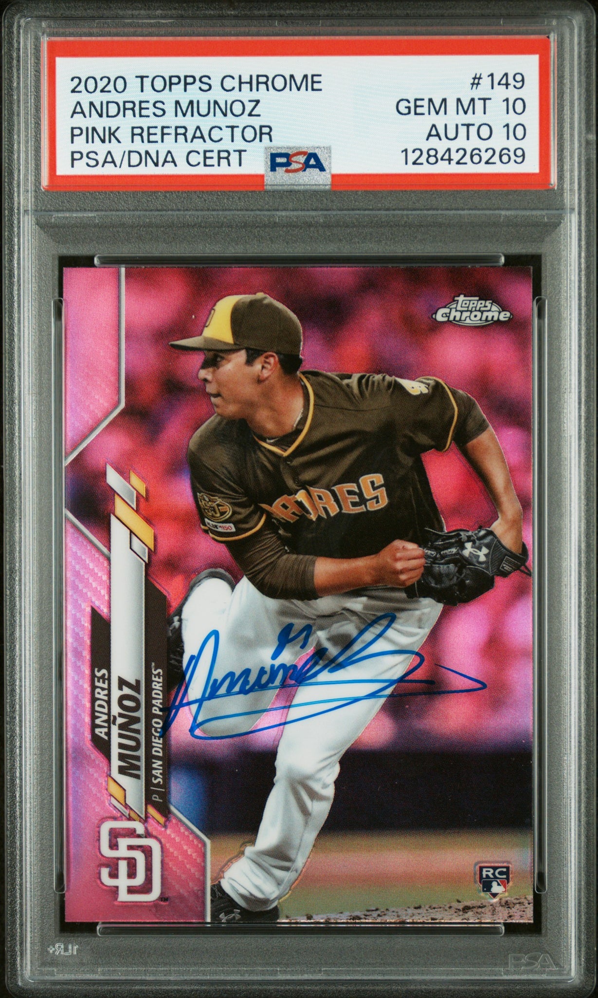 PSA 10/10 2020 Topps Chrome Pink Refractor #149 Andres Munoz RC San Diego Padres Autographed POP3