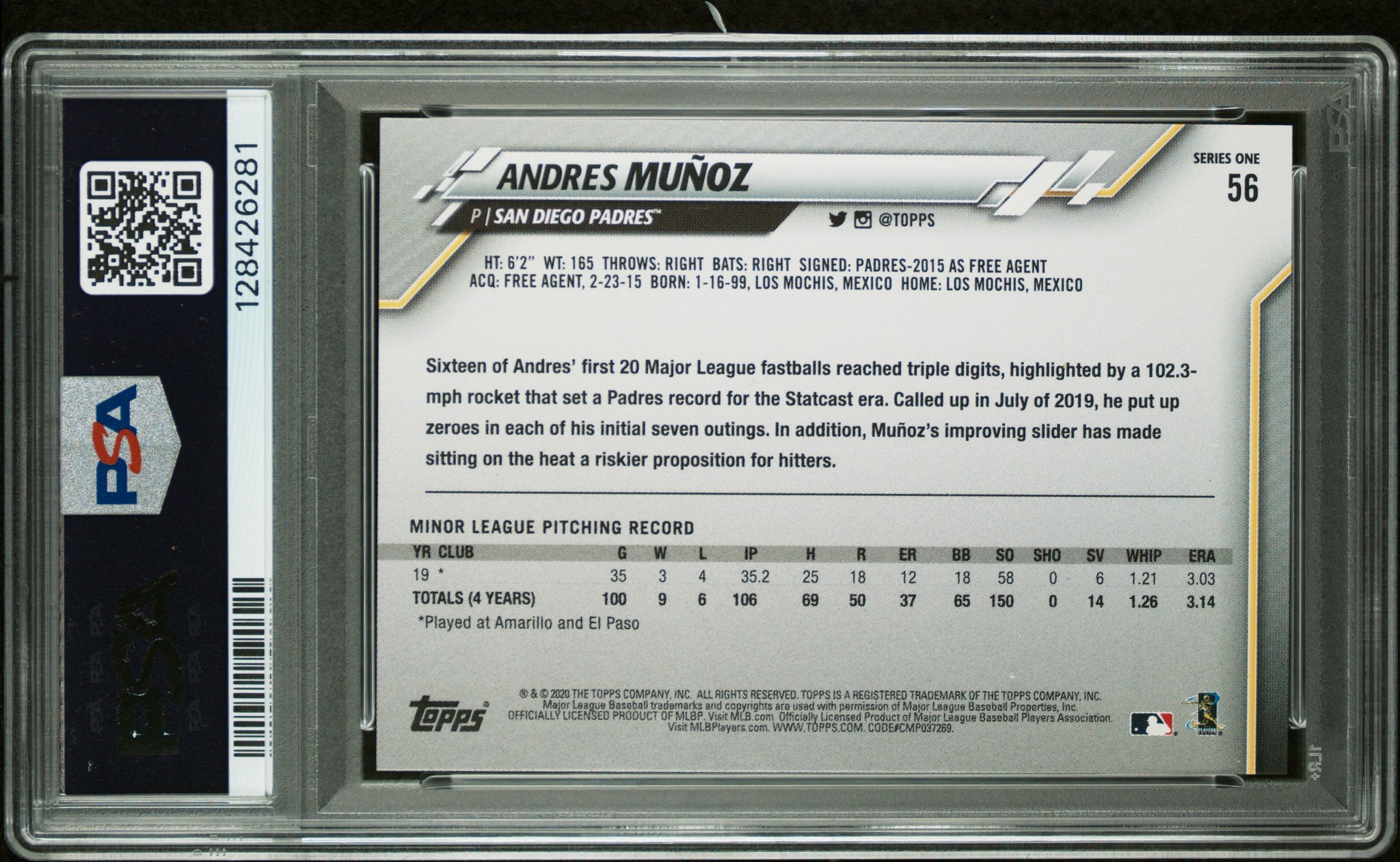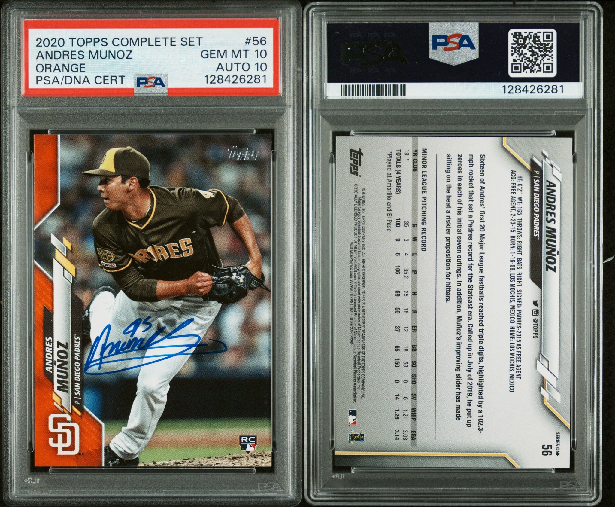 PSA 10/10 2020 Topps Factory Set Orange #56 Andres Munoz RC San Diego Padres Autographed POP1