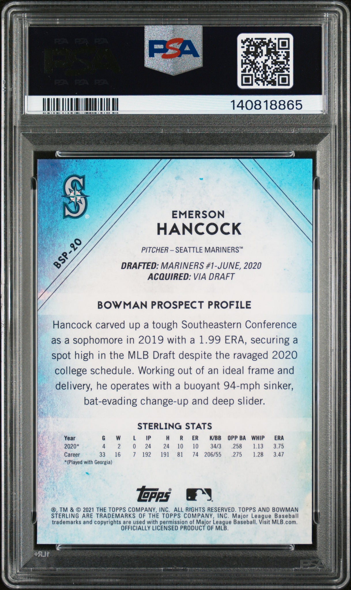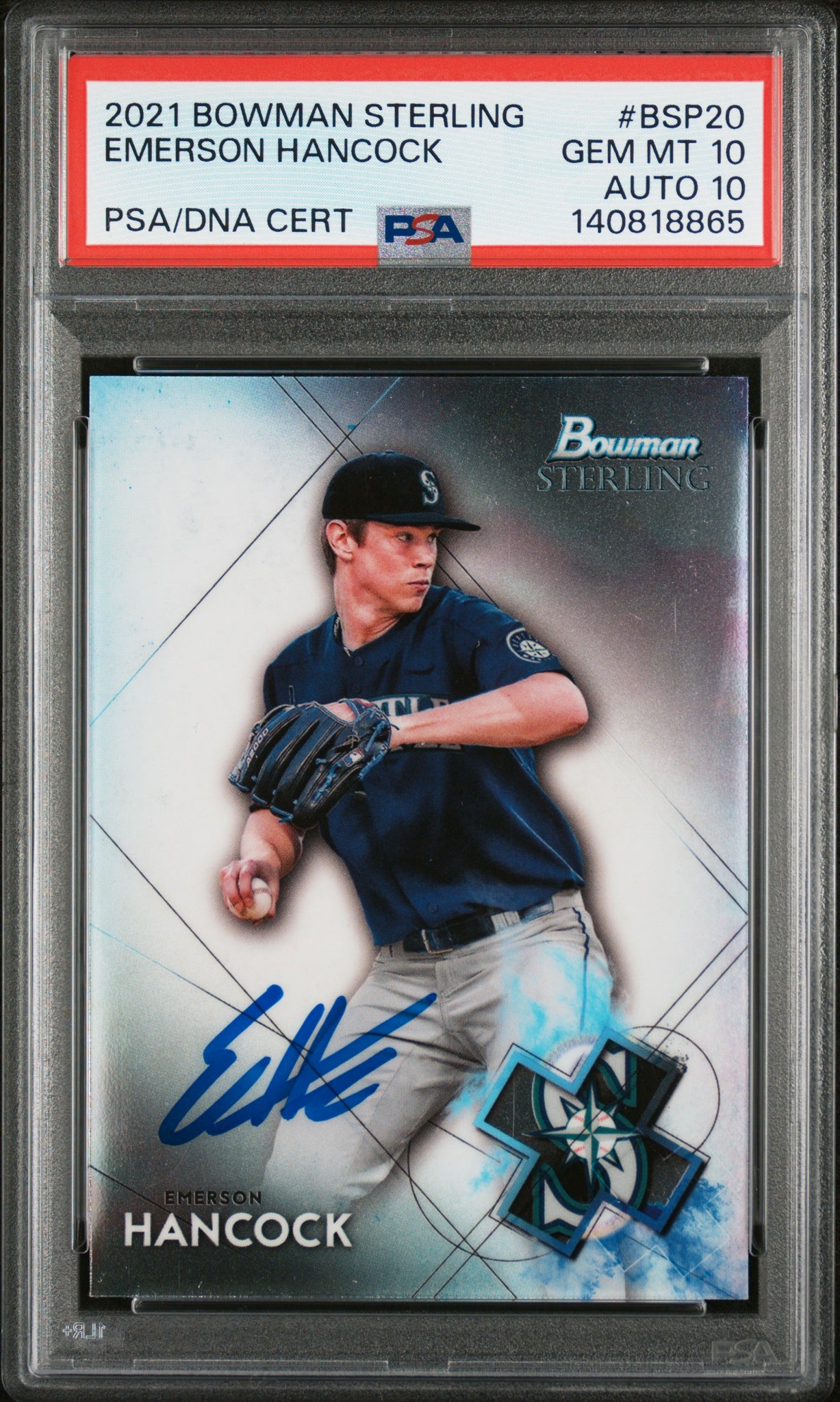 PSA 10/10 2021 Bowman Sterling Prospects #BSP20 Emerson Hancock Seattle Mariners Autographed POP1