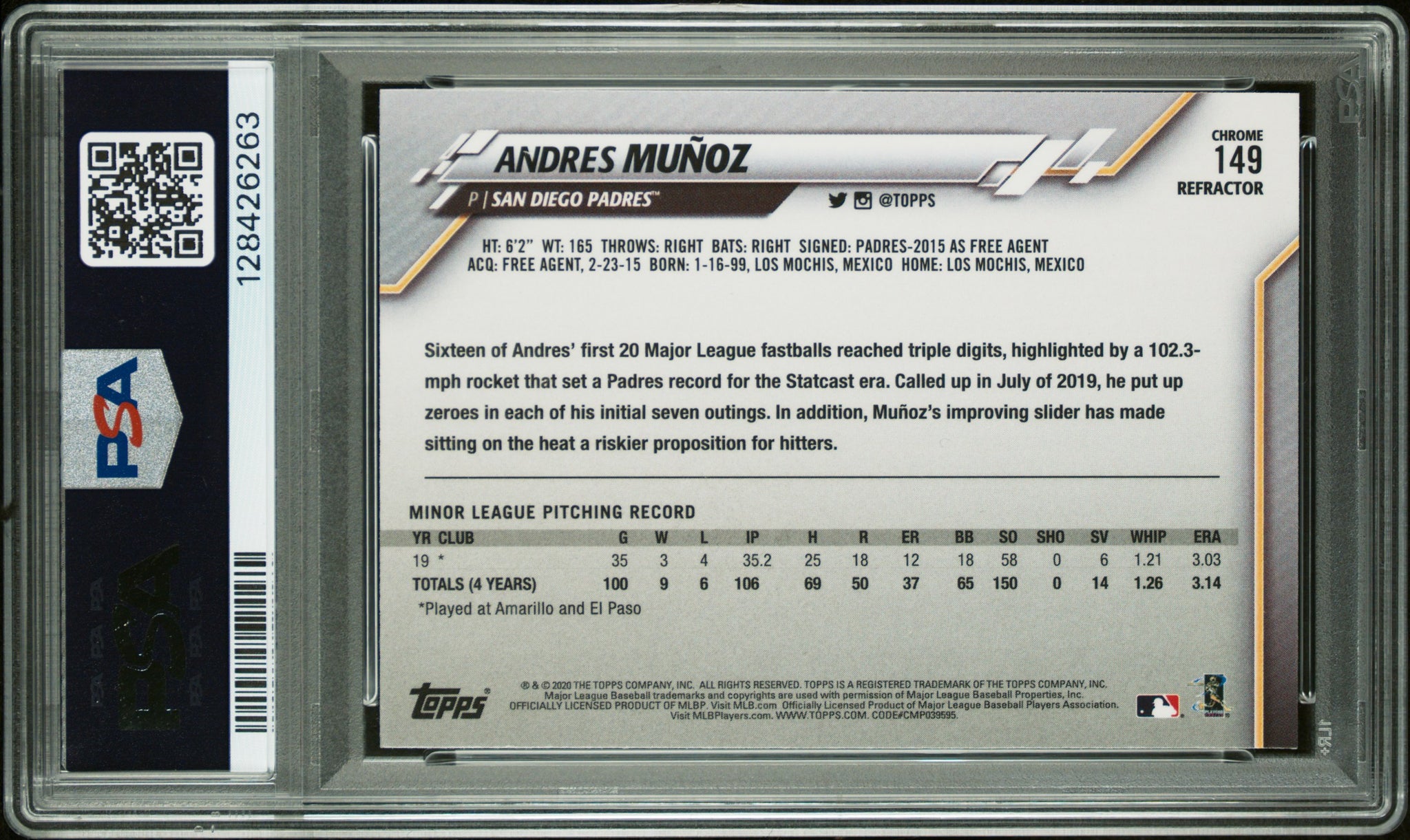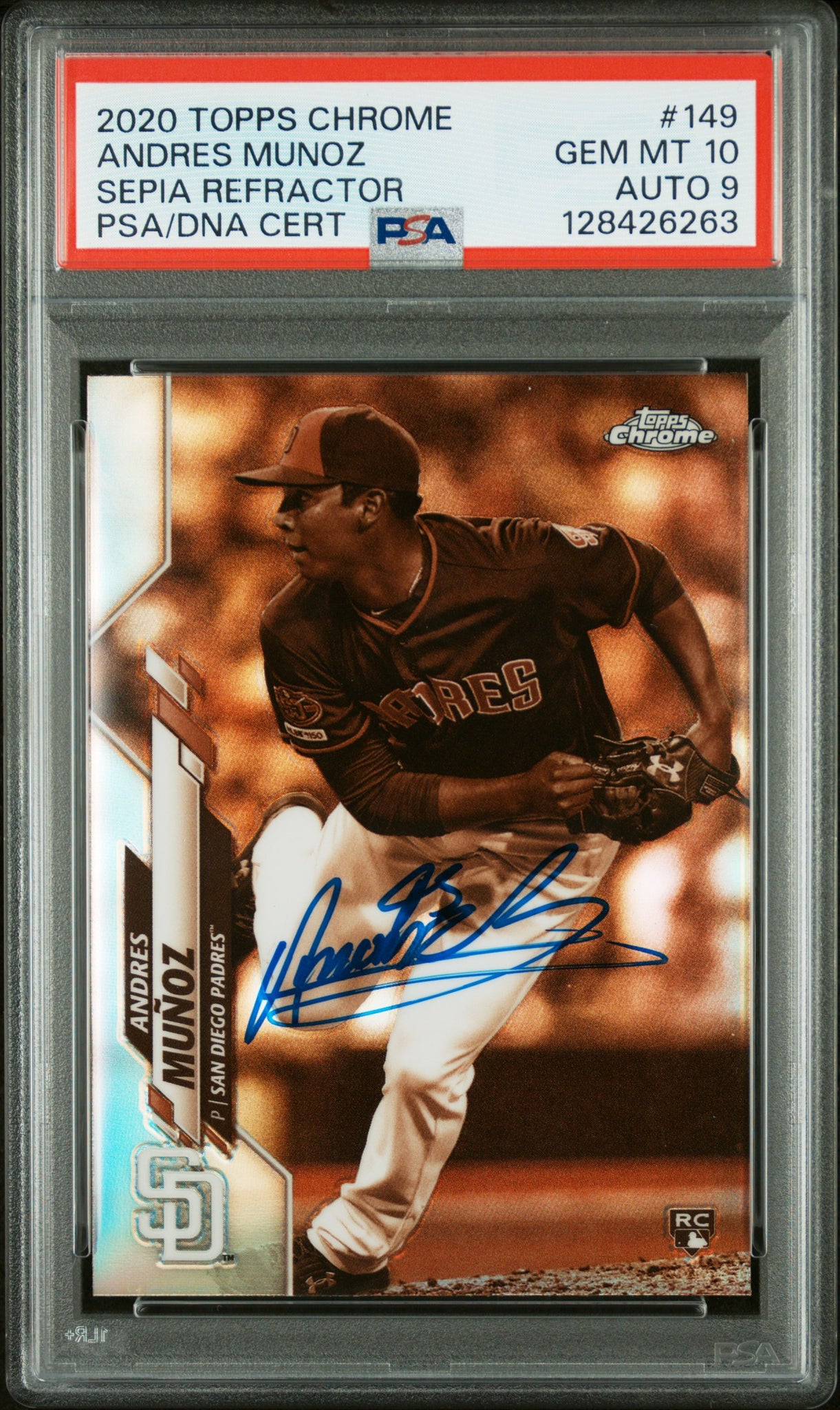 PSA 10/9 2020 Topps Chrome Sepia Refractor #149 Andres Munoz RC San Diego Padres Autographed POP4