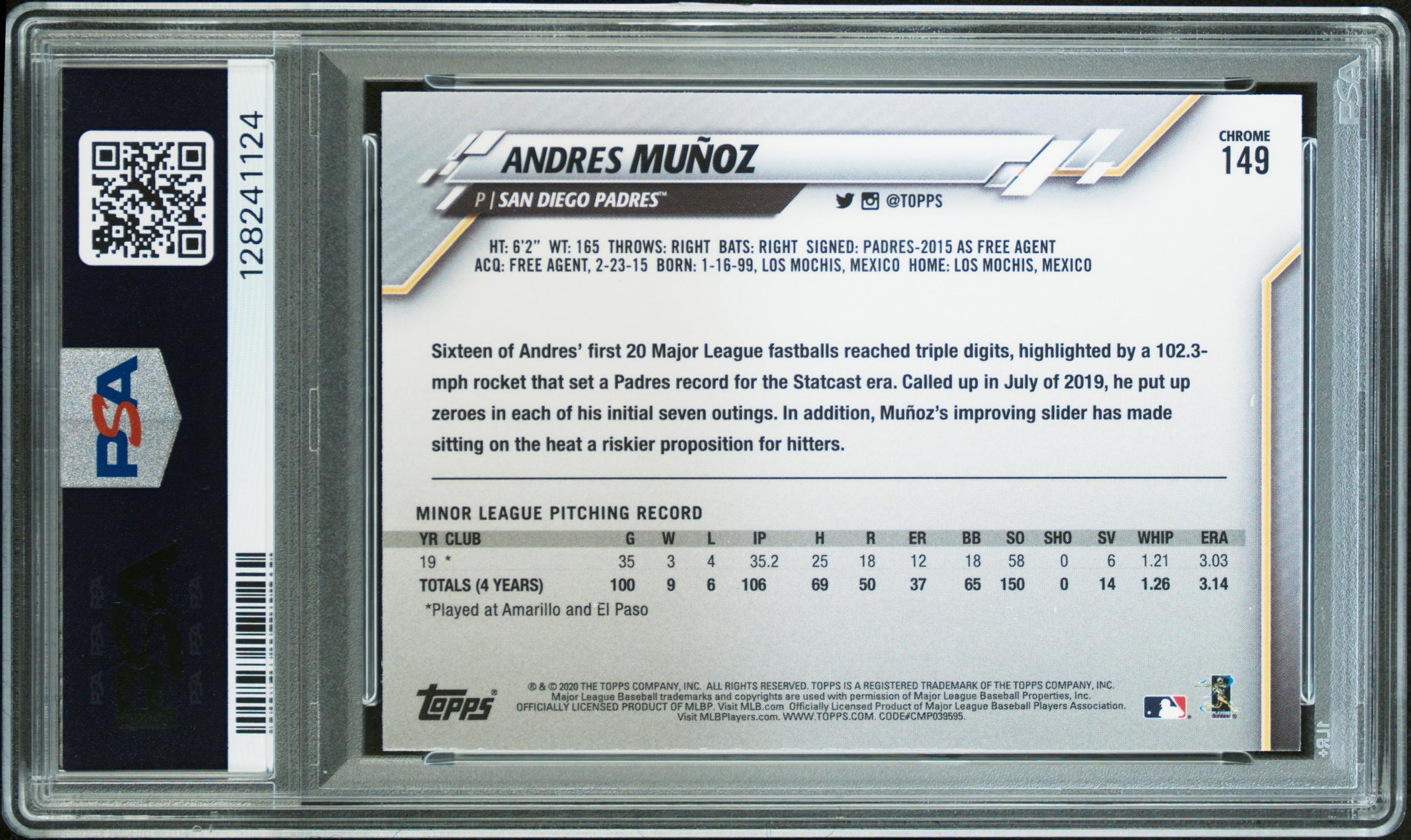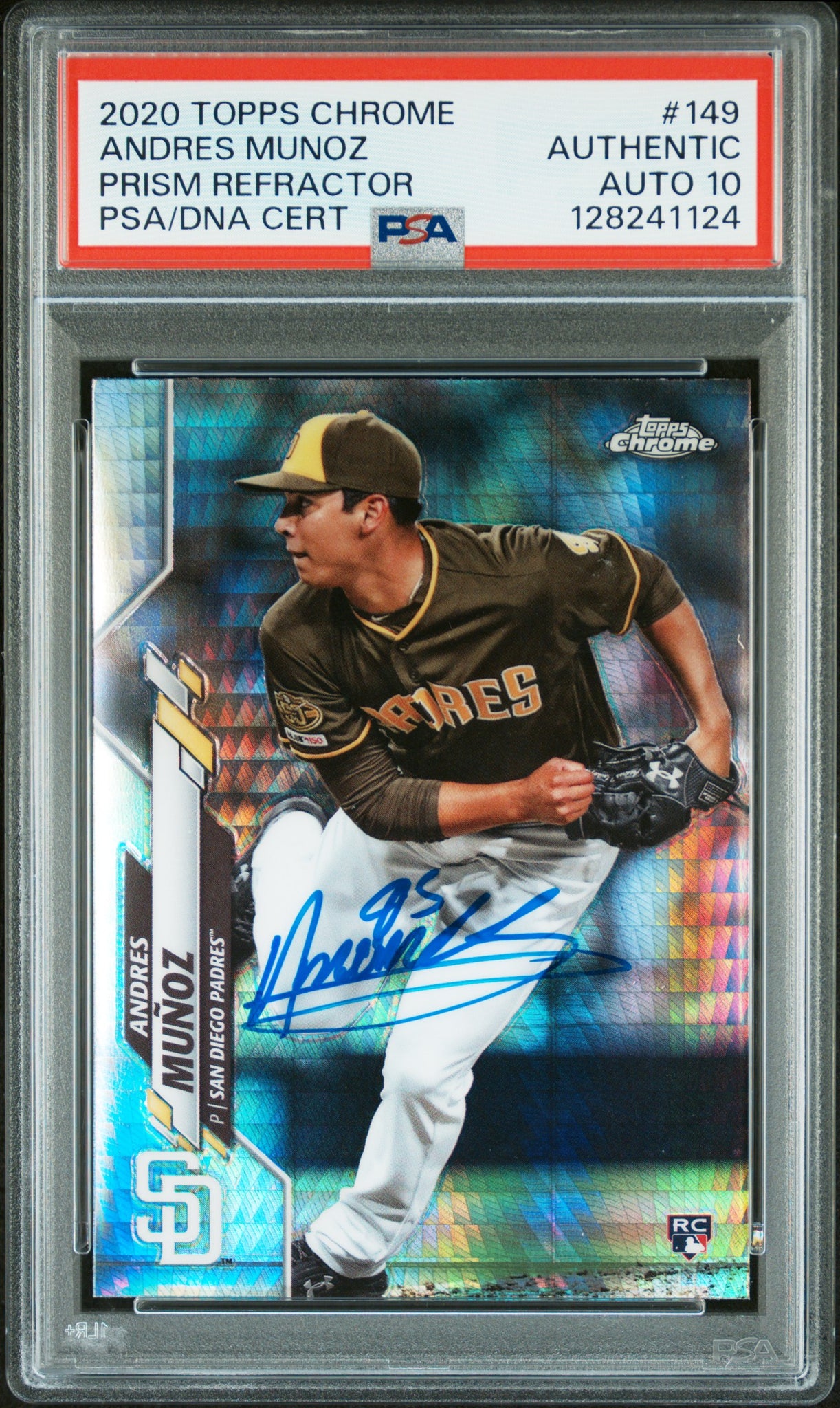 PSA DNA 10 2020 Topps Chrome Prism Refractor #149 Andres Munoz RC San Diego Padres Autographed POP2