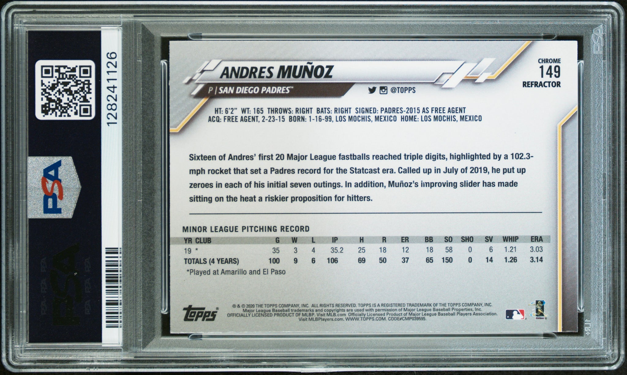 PSA DNA 10 2020 Topps Chrome Sepia Refractor #149 Andres Munoz RC San Diego Padres Autographed POP1