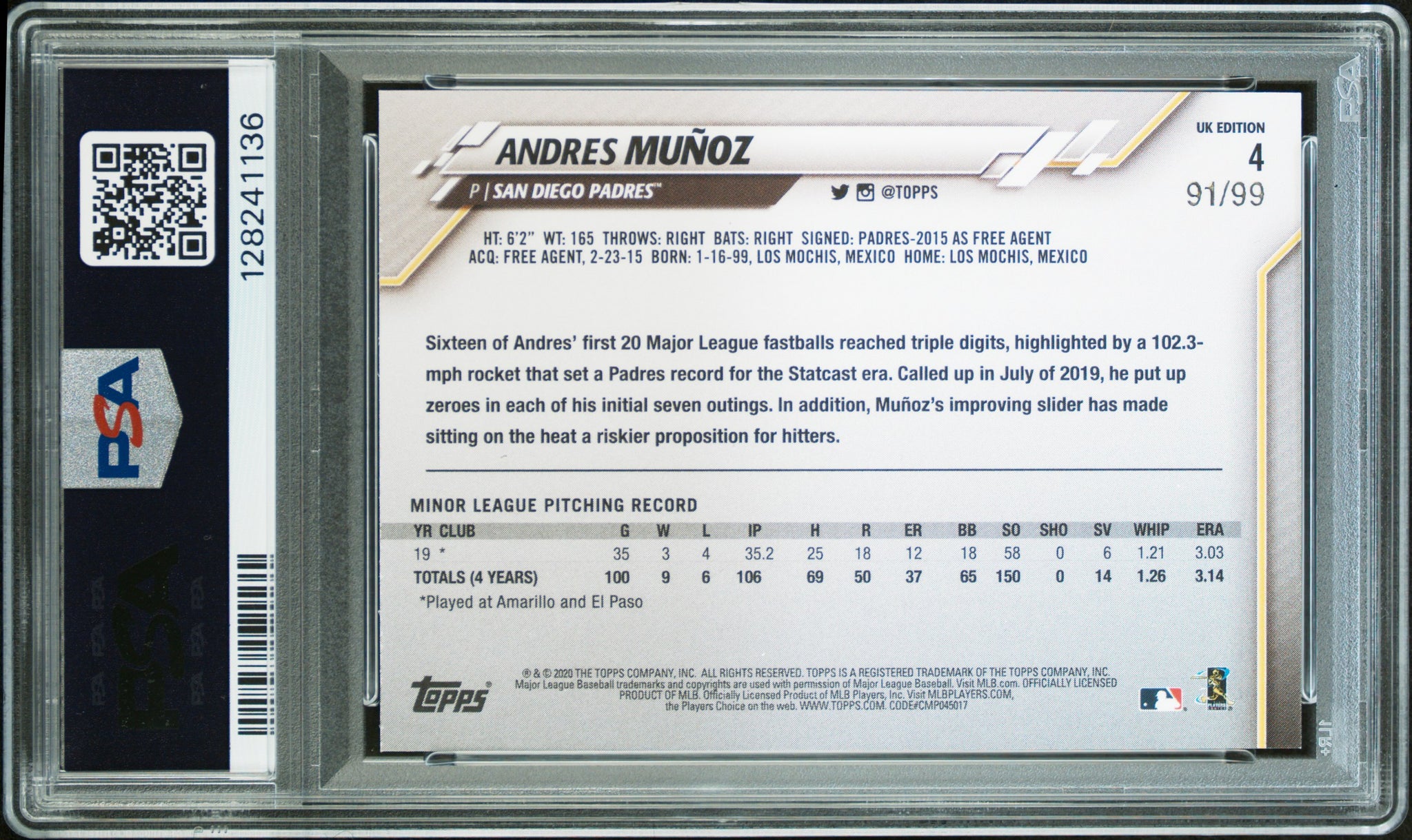 PSA DNA 10 2020 Topps UK Big Ben #4 Andres Munoz RC 91/99 San Diego Padres Autographed POP1