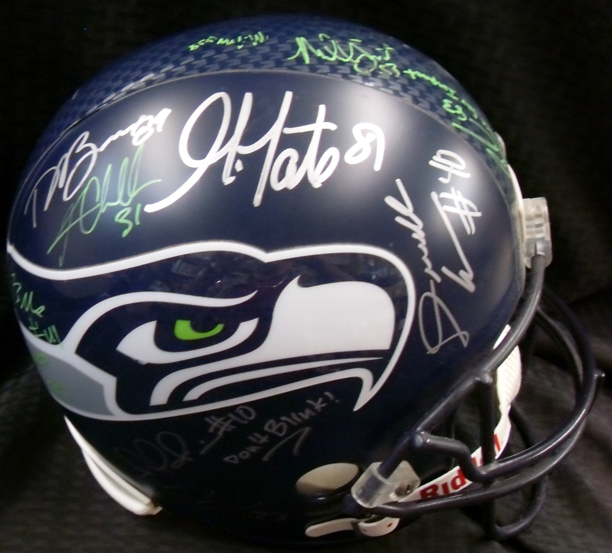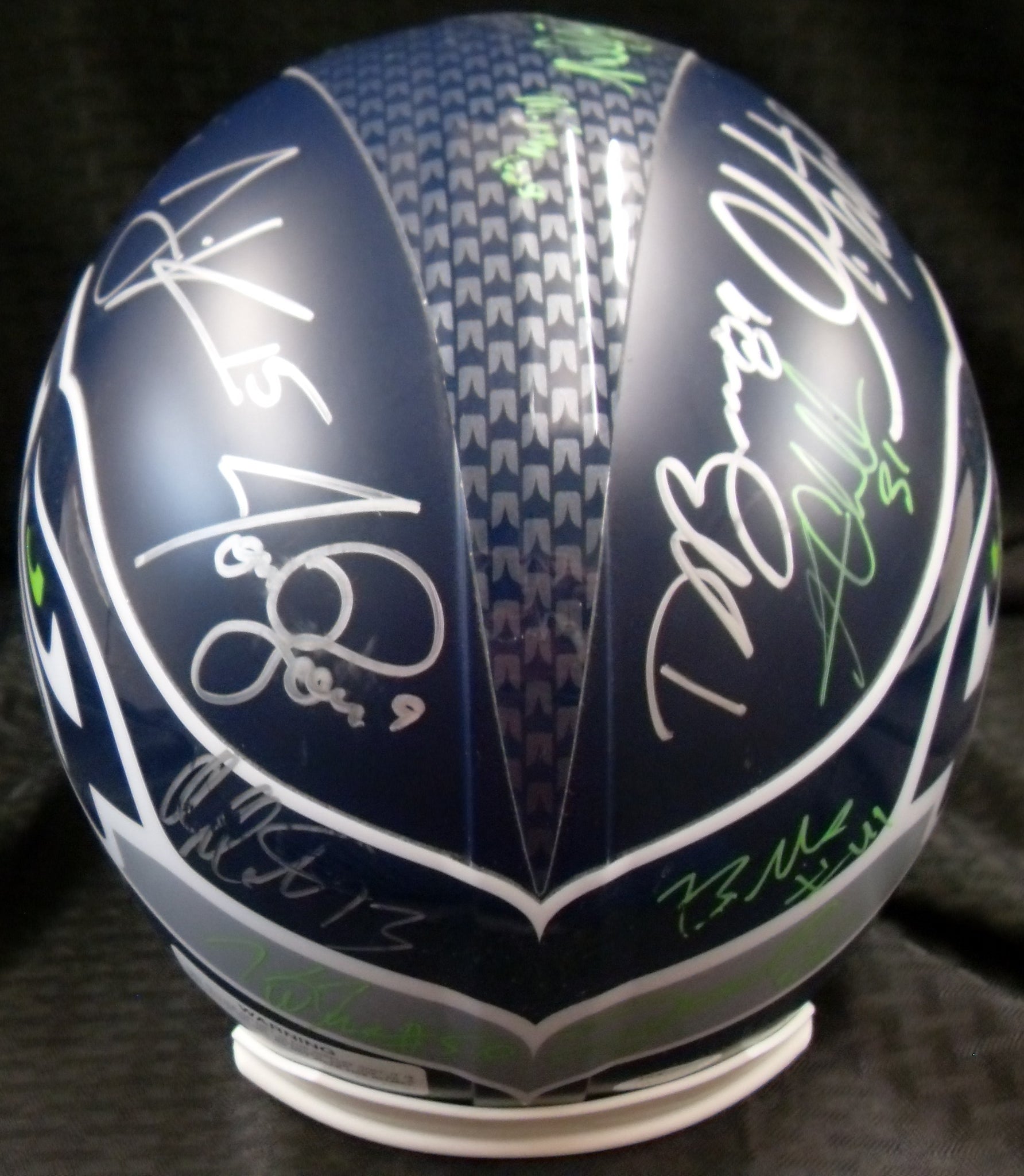 This full size replica helmet was hand signed & inscribed by the following Seattle Seahawks: